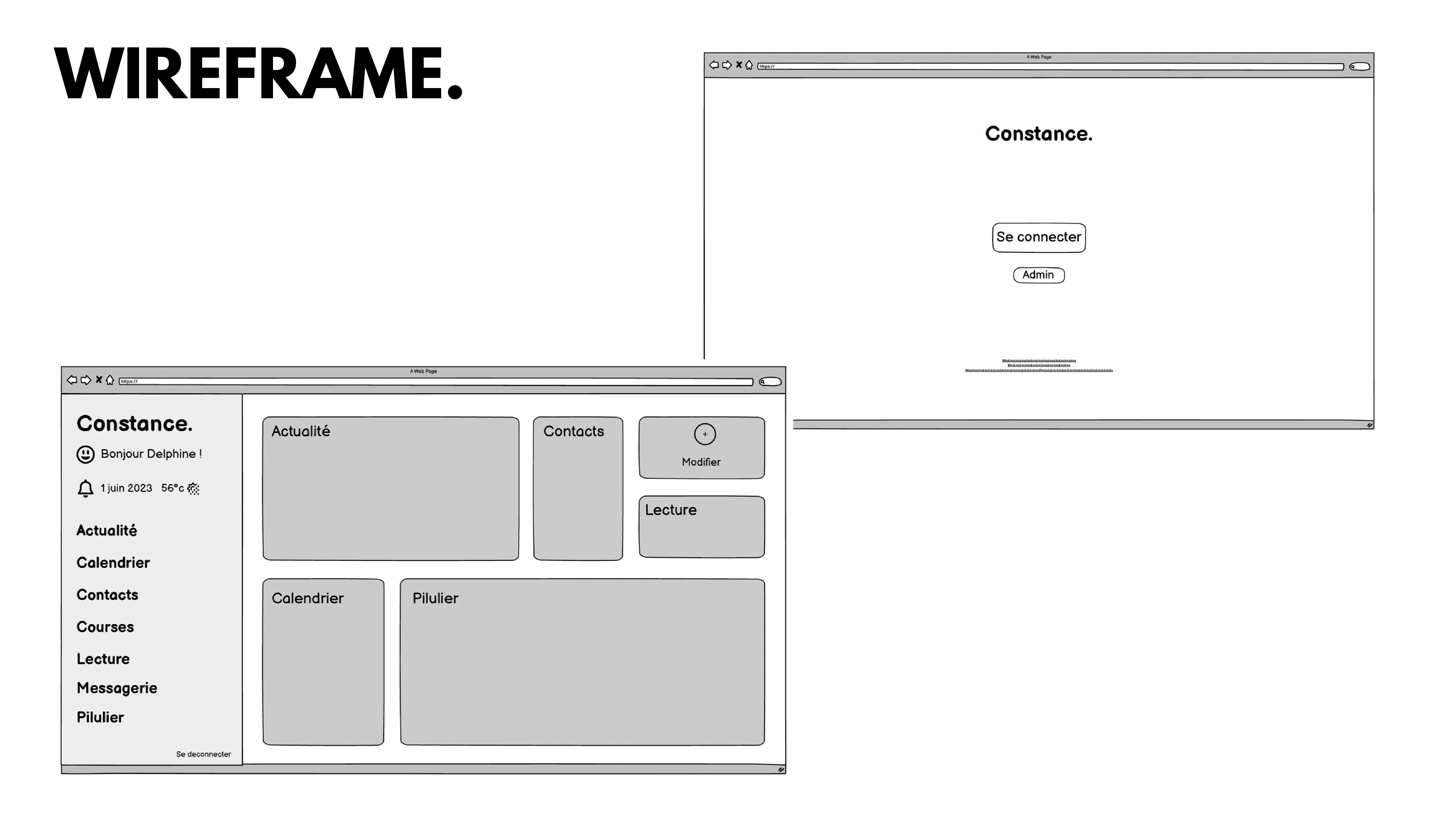 Constance est une application fictive pensée pour accompagner les seniors et leurs proches. Avec une interface simple pour les aînés et une gestion complète à distance par la famille, elle facilite le quotidien : courses, médicaments, rendez-vous, appels et plus encore.