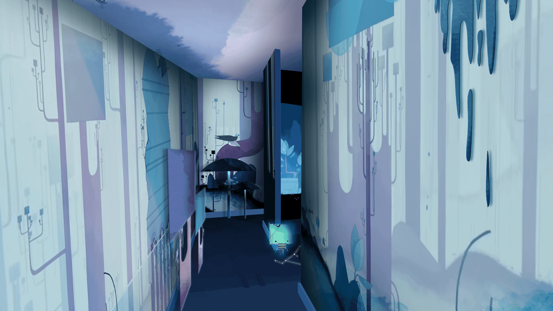 Création d’un pop-up immersif composé de rooms interactives recréant les mondes du jeu. Réalisés en papier en hommage au style aquarelle original, enrichis d’hologrammes et d’objets tactiles, ces espaces invitent les visiteurs à traverser les cinq phases du deuil représentées dans Gris. L’expérience se conclut par une boutique, offrant une transition fluide vers la découverte et l’achat du jeu.