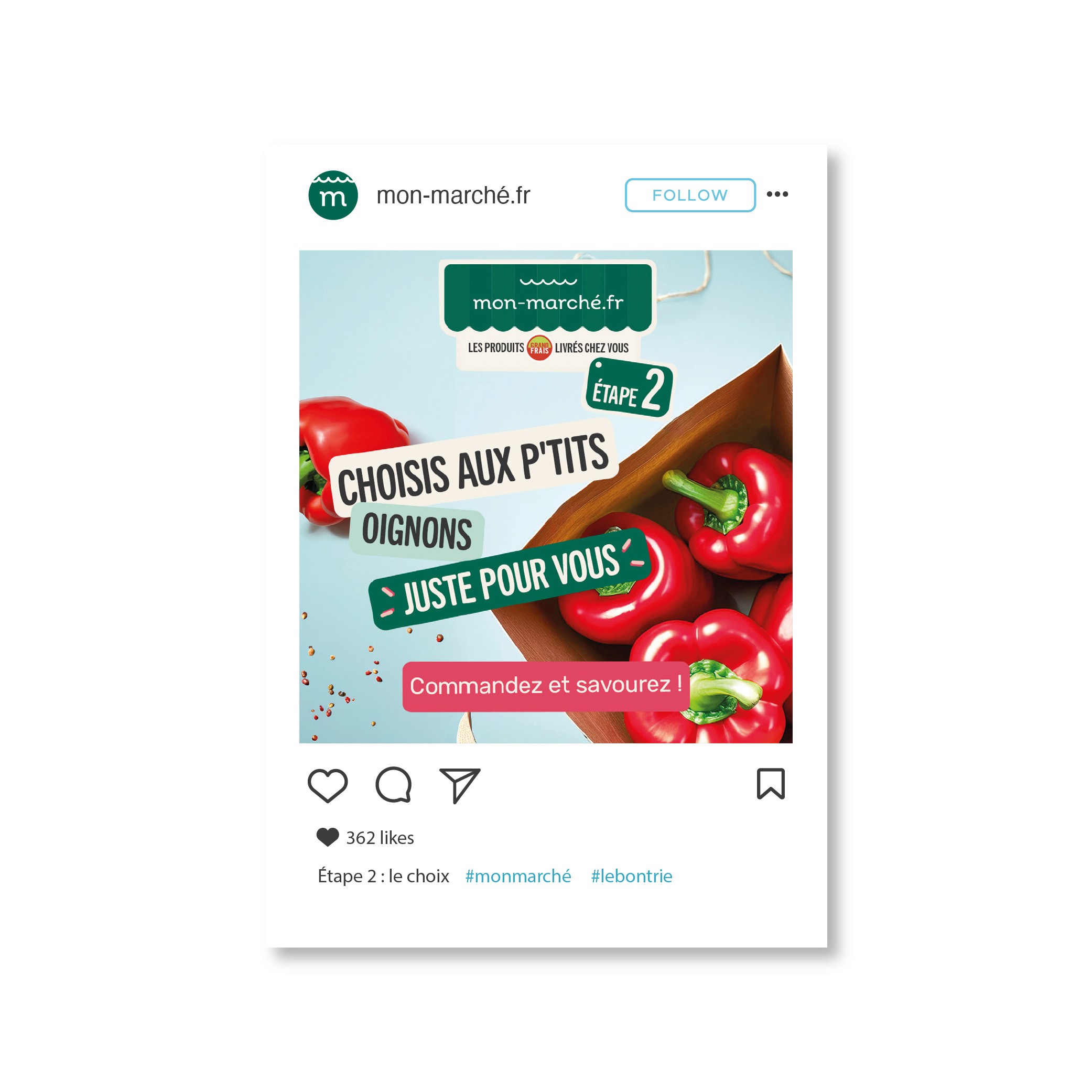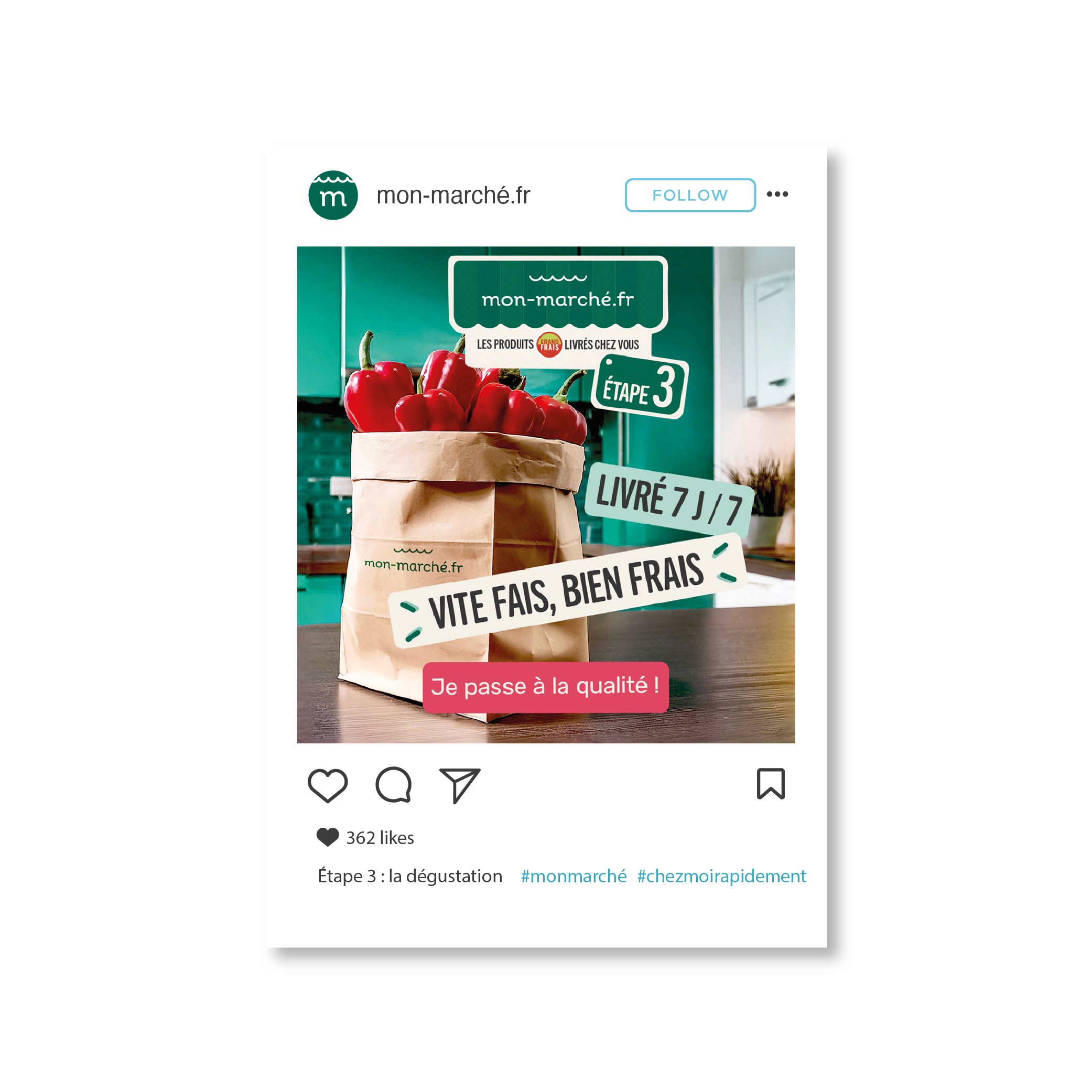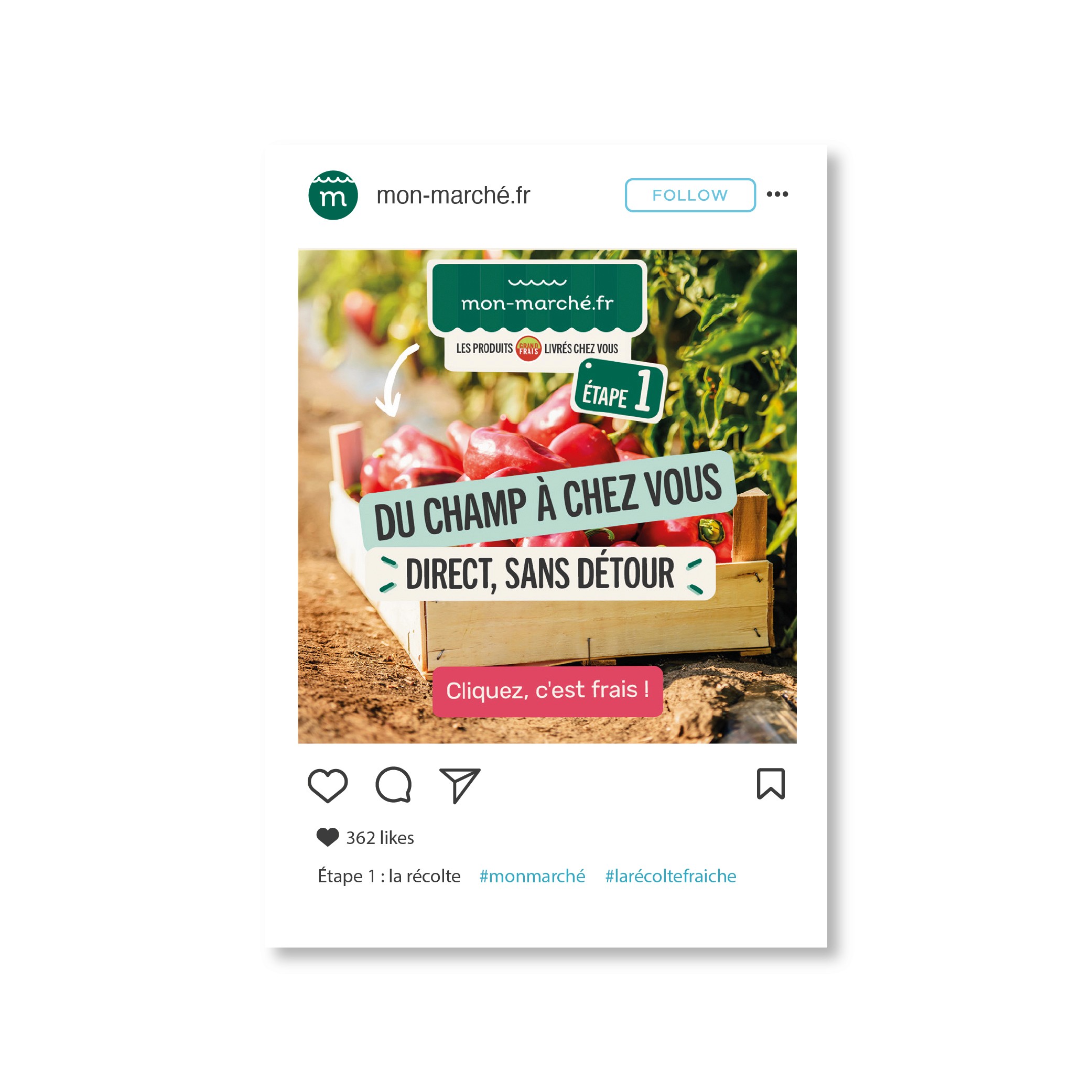 Mon Marché, service de livraison de produits frais issus de producteurs locaux. J’ai conçu une campagne social ads et une vidéo storytelling.